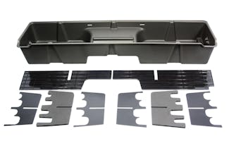 Whether you're a contractor, sportsman, or simply someone looking for a great way to organize your pickup truck, the DU-HA is perfect for you. The DU-HA allows you to store your guns, ammunition, hunting gear, fishing rods and reels, tackle, GPS, binoculars, power tools, rain gear, tow ropes, tie down straps, first aid kit, bungee straps, jack, hats, boots, gloves, jackets, chains, jumper cables, spare batteries, etc. safely and securely either under or behind the back seat of your pickup truck.