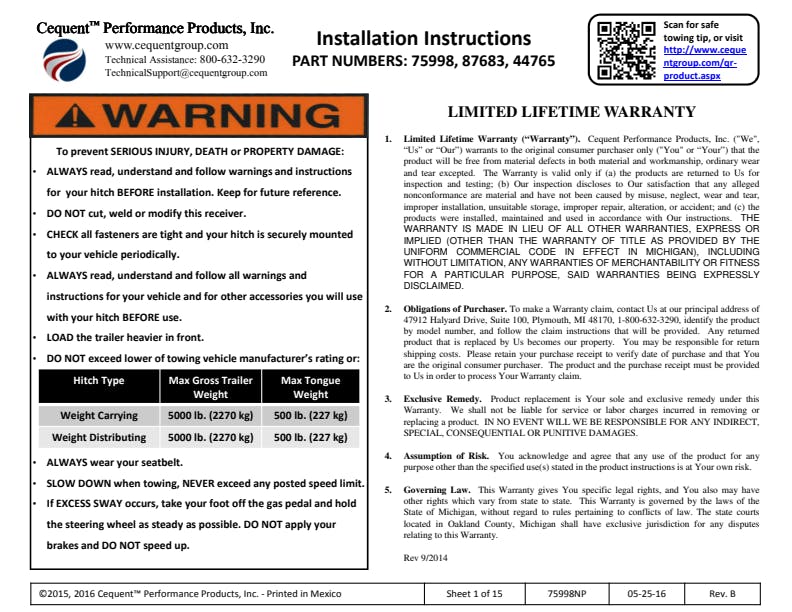 2" Square Receiver Tube Opening Max-Frame receivers are designed for trucks, vans and sport utility vehicles Neat Appearance, All Frame Attachments E-Coat Base w/ Black Powder Coat Finish Rated up to 5,000 lbs. (GTW) Weight Carrying (WC)Rated up to 5,000 lbs. (GTW) Weight Distributing (WD) Solid All-Welded Construction for Maximum Strength and Safety Custom Built According to Manufacturer & Model Year Ensures Perfect Fit and Top Towing Performance Computer-Aided Design and Fatigue Stress Testing Designed to Withstand Road Abuse Within Specified Capacities Backed by a Nationwide Limited Lifetime Warranty