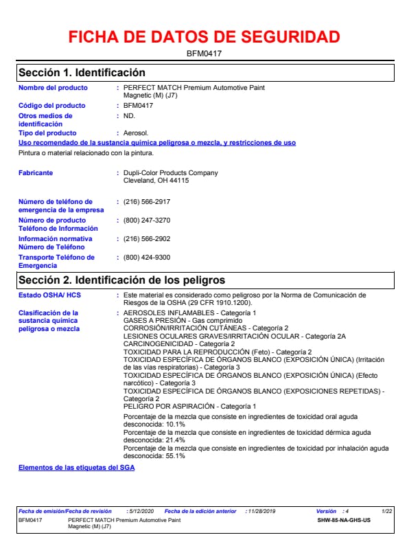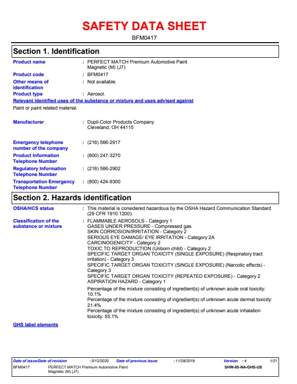 | SDS Sheet Number | www.paintdocs.com |