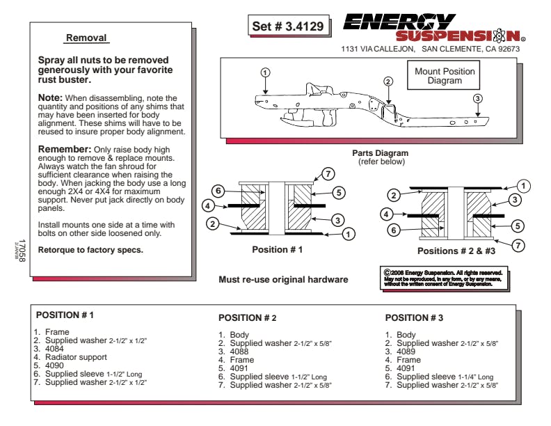 Will replace distorted and worn-out original rubber mounts to maintain car body and truck cab to bed alignment. Original rubber mounts are so soft they often crack, distort, and crush so badly they often fall off! And aluminum body mounts are too harsh for street use that they tend to break and cause other components to break.Energy's specially formulated Hyper-Flex(TM) polyurethane cab and body mounts combine the best qualities of both: they're soft enough for a smooth ride, yet rugged enough for the most demanding road or track.Most sets have a strong zinc plated steel ring molded into them - for added durability and when the application requires it.