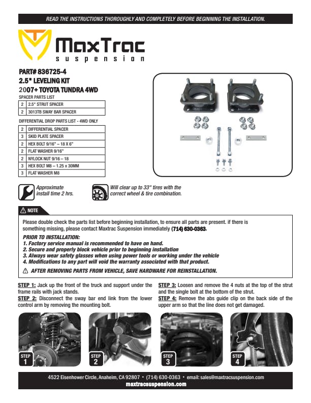 MAX TRAC SUSPENSION'S PART# 836725-4 IS A PAIR OF 2.5" LIFT STRUT SPACERS W/ DIFFERENTIAL DROP FABRICATED FROM STEEL & POWDER COATED GREY