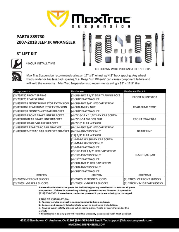 MAX TRAC SUSPENSION'S PART# 889730 IS 3" COIL LIFT KIT (W/ NO SHOCKS)