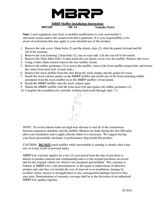 We suggest having your local snowmobile mechanic or performance shop install this product.