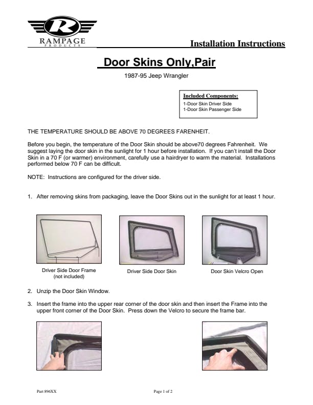 Replacement door skins make it easy to replace those worn or damaged soft upper doors. Upper door skins attach to the frame with durable hook and loop fasteners. Use original upper door frames or can be purchased separately.