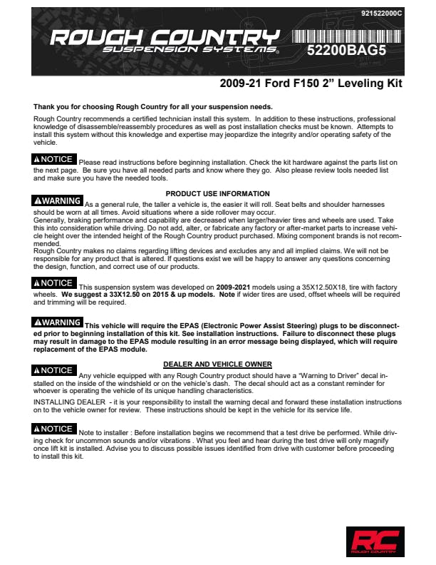 Elevate Your F-150 with Confidence: Rough Country's 2-Inch Lift Kit delivers the perfect blend of bold looks, premium strength, and off-road capability. Gain 2 inches of lift for enhanced clearance while preserving the comfort and stance of your factory ride. Effortless Bolt-On Installation: Get back on the road faster with a 100% bolt-on design that requires no cutting or welding. This kit installs easily with common tools, making it a hassle-free upgrade for weekend wrenchers and pros alike. Smooth OEM Ride Quality: Engineered for comfort, this kit maintains the smooth and responsive factory ride you love. Enjoy improved clearance without sacrificing the feel of your daily drive. Boosted Ground Clearance: Conquer trails, rocks, and rough terrain with added ground clearance. This kit is your gateway to fitting up to 33-inch tires for a tougher, trail-ready look and performance. Balanced Factory Stance: This kit includes a rear lift block to maintain your F-150's factory rake, giving you a level, balanced appearance without compromising the original design. Shock Options Built Around You: Whether you're going with our reliable nitrogen-charged N3 shocks or upgrading to the elite Vertex reservoir setup, this lift kit is fully compatible and ready to match your preferred ride quality.