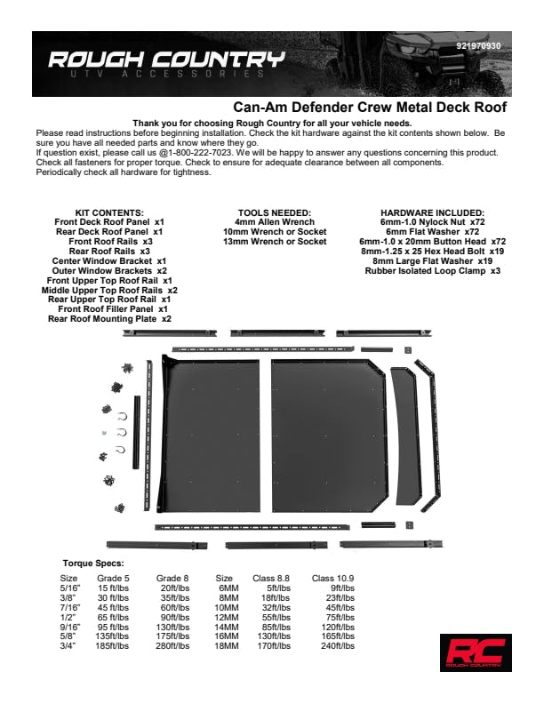 UTV Deck Roof - 4-Door - Can-Am Defender Max
