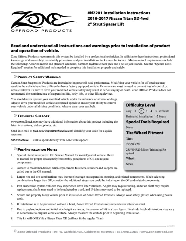 Zone Offroad Products ZONN1 Zone 2 Adventure Series Lift Kit